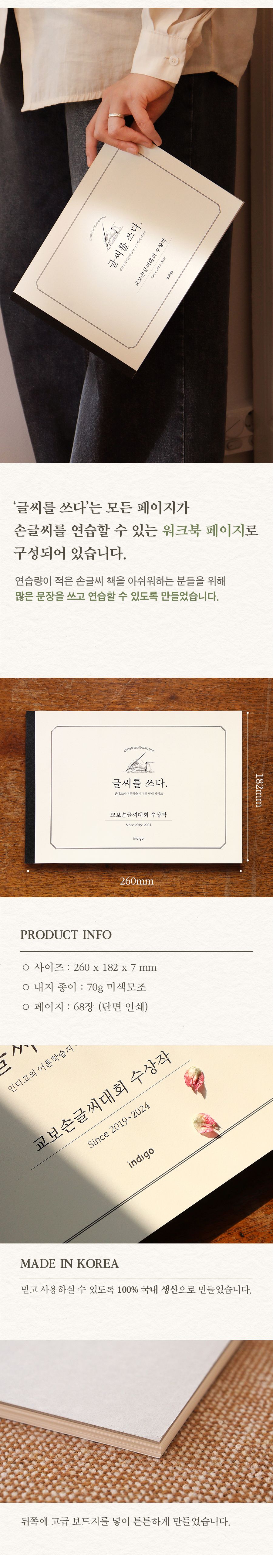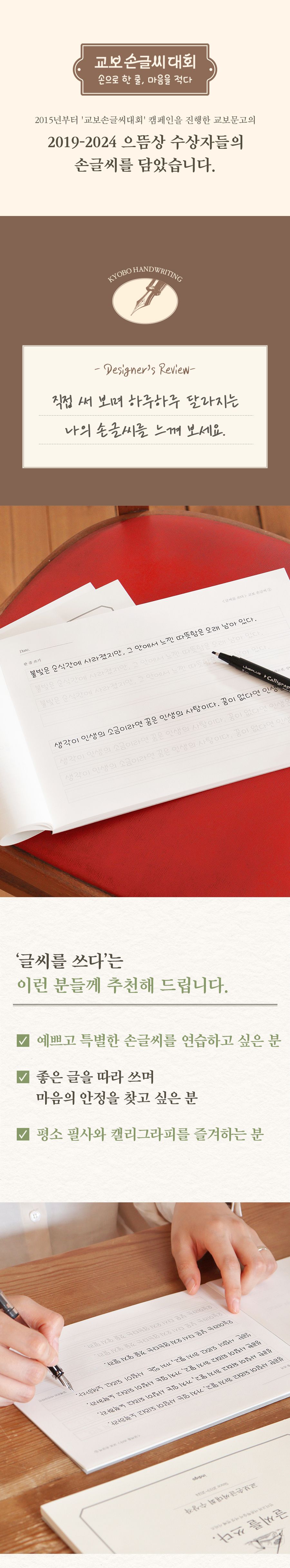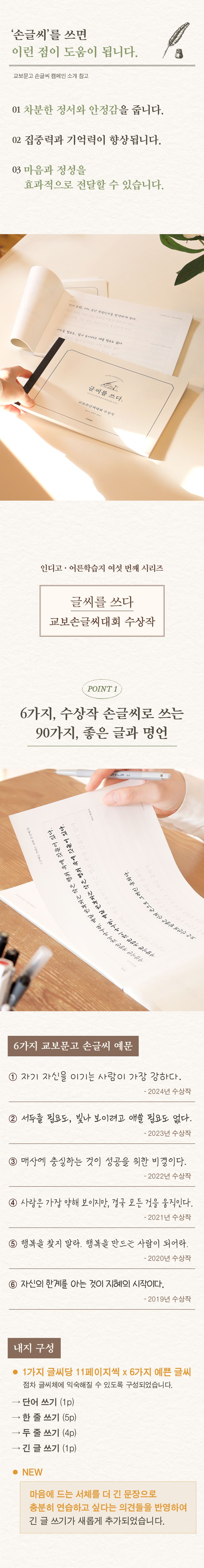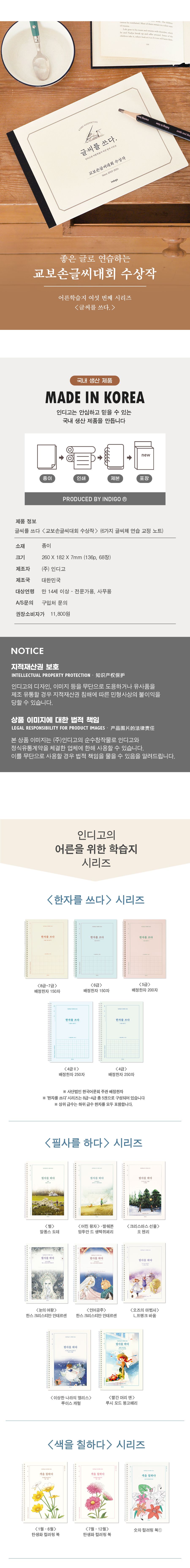| 품명 및 모델명 | 글씨를 쓰다 _교보손글씨 대회 수상작 (6가지 글씨체 연습 교정 노트) 어른 학습지⑥ | ||