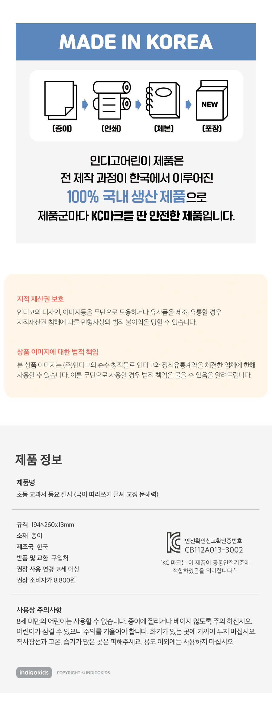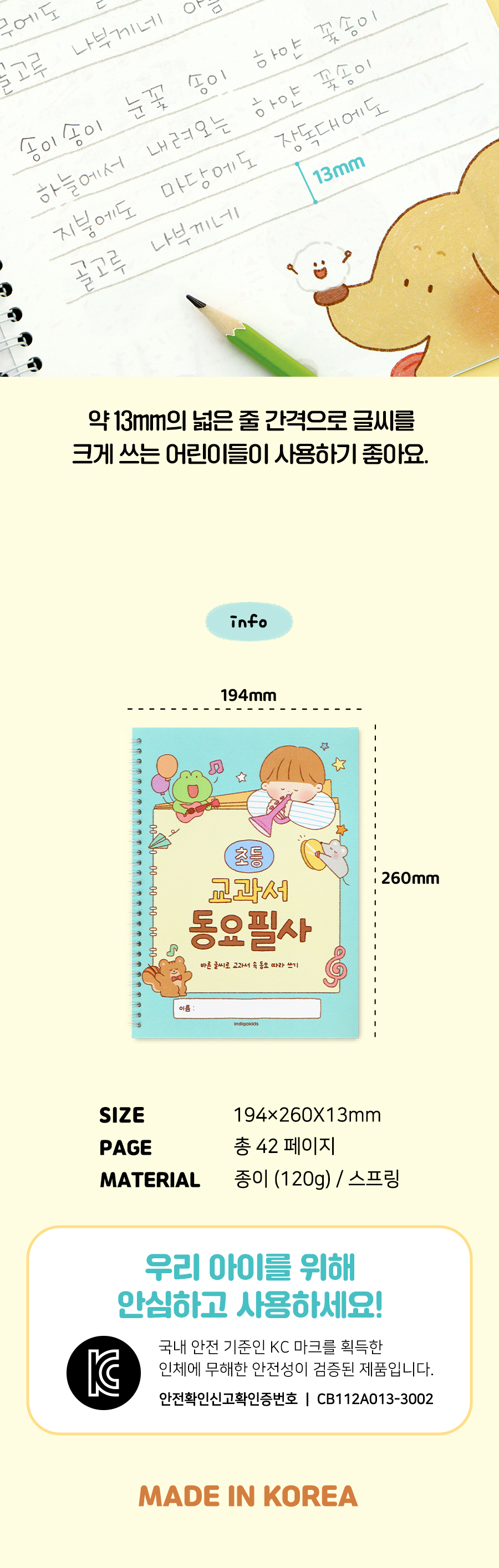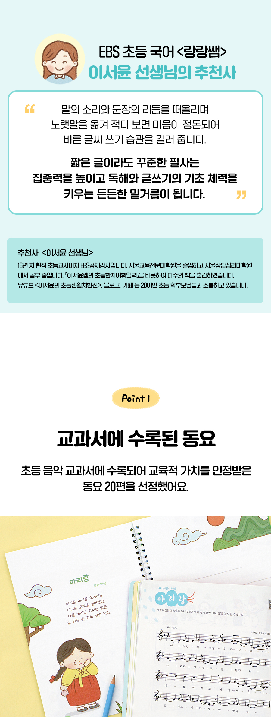 | 품명 및 모델명 | 초등 교과서 동요 필사 (국어 따라쓰기 글씨 교정 문해력) | ||