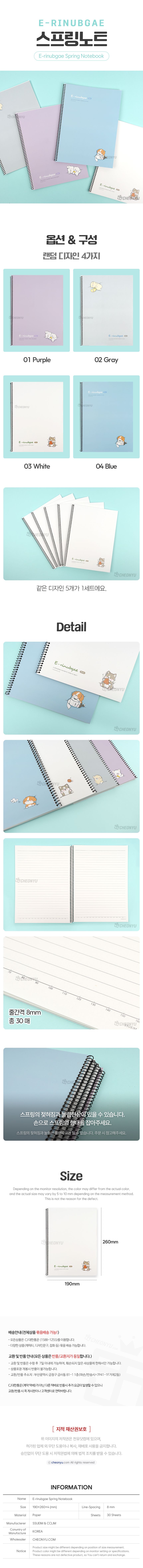 | 품명 및 모델명 | 이리눕개 스프링노트 (5개 1세트)(랜덤) | ||