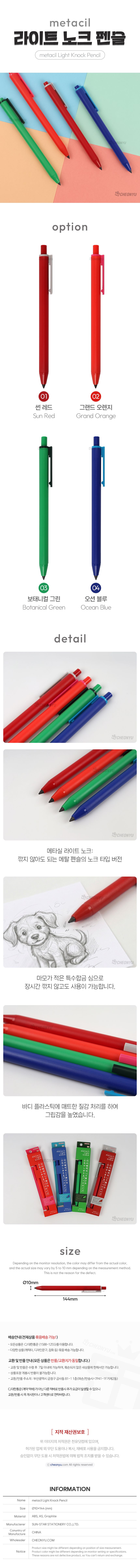 | 품명 및 모델명 | metacil 메타실 라이트 노크 펜슬 | ||