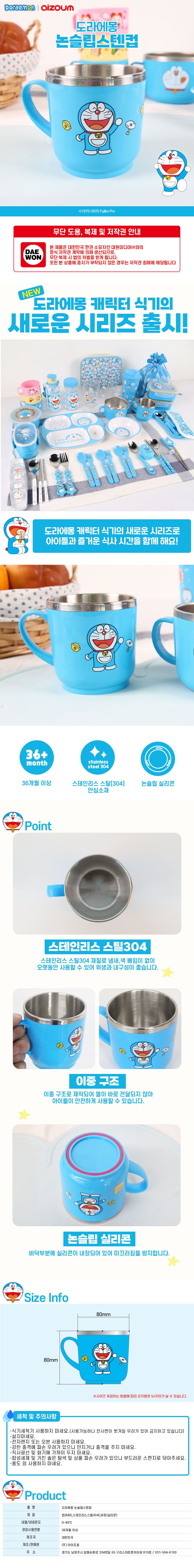 | 품명 및 모델명 | 도라에몽 논슬립 스텐컵 250ml | ||
