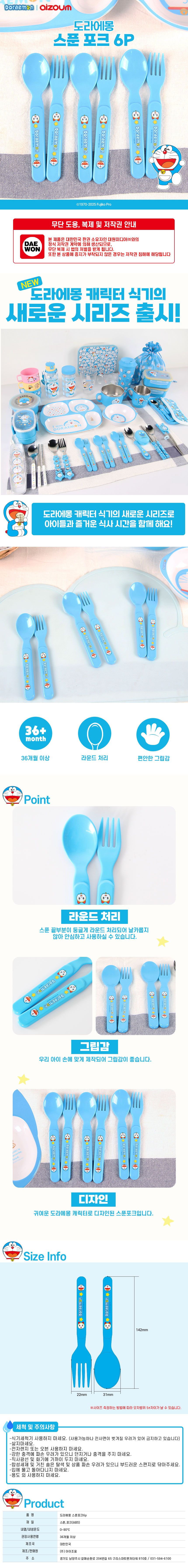 | 품명 및 모델명 | 도라에몽 스푼포크 6P 세트 | ||