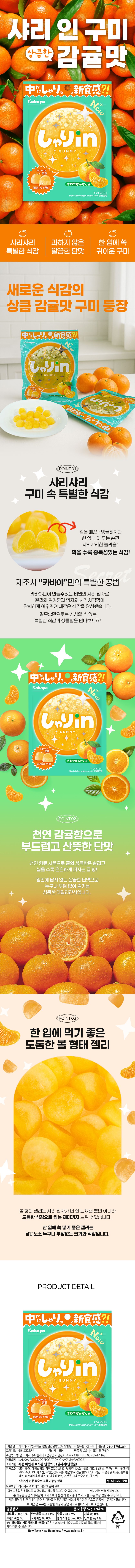 | 품명 및 모델명 | 카바야 샤리 인 구미 감귤맛 52g | ||