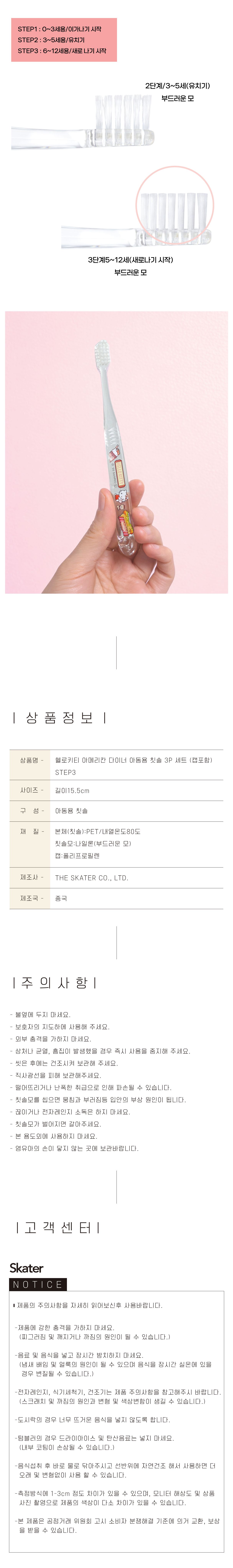 | 품명 및 모델명 | 헬로키티 아메리칸 다이너 아동용 칫솔 3P 세트 (캡포함) STEP3 | ||
