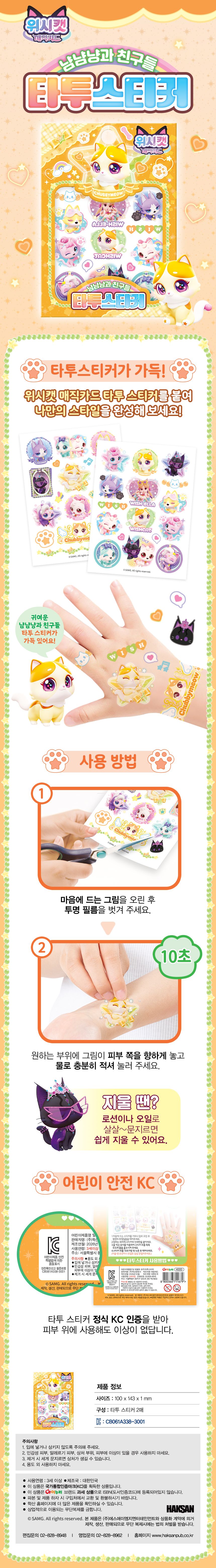 | 품명 및 모델명 | 위시캣 매직카드 타투스티커_냠냠냥과 친구들 | ||