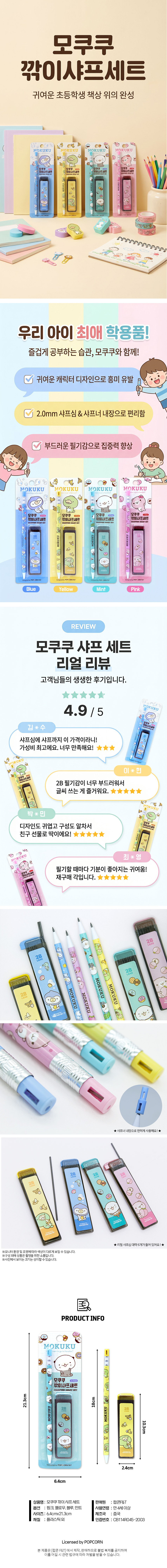 | 품명 및 모델명 | 모쿠쿠 깎이샤프 세트 (랜덤) | ||