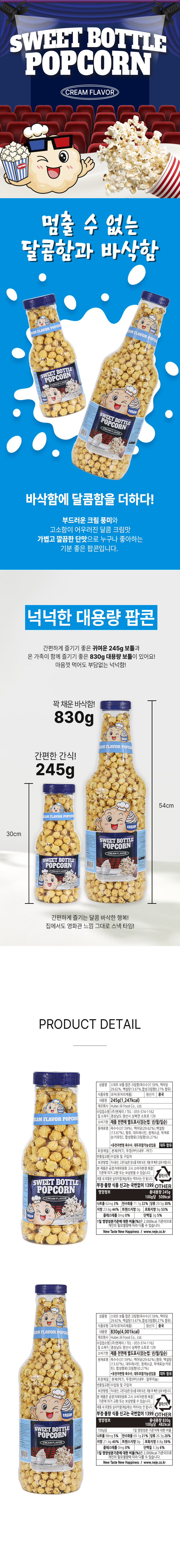 스위트보틀 크림맛 팝콘 245g
