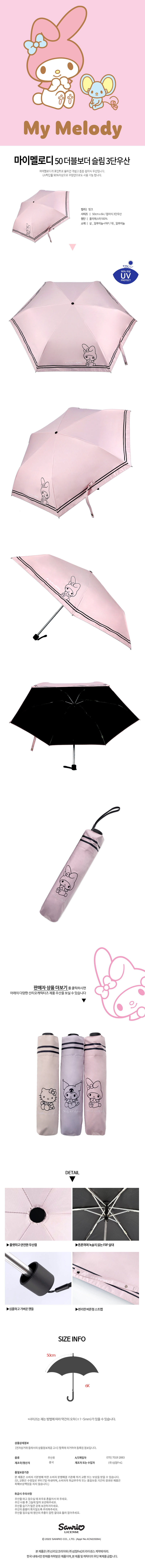 마이멜로디 더블보더 슬림 암막코팅 3단 우산