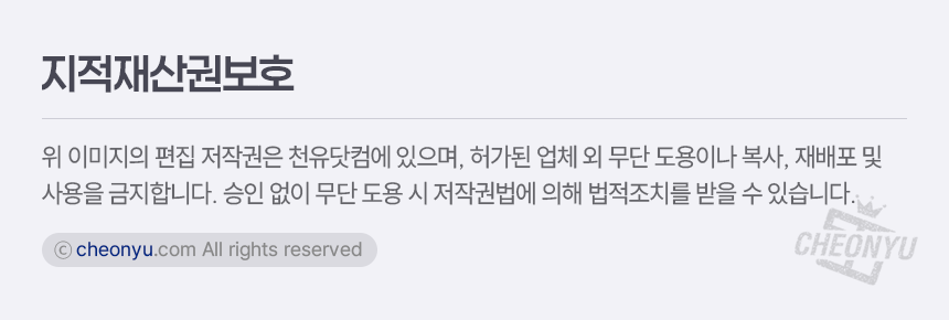 • 상품/교환/반품/배송/기타 문의는 천유닷컴 게시판 및 고객센터 1544-7102 에서 빠르고 편리하게 처리해드립니다.
