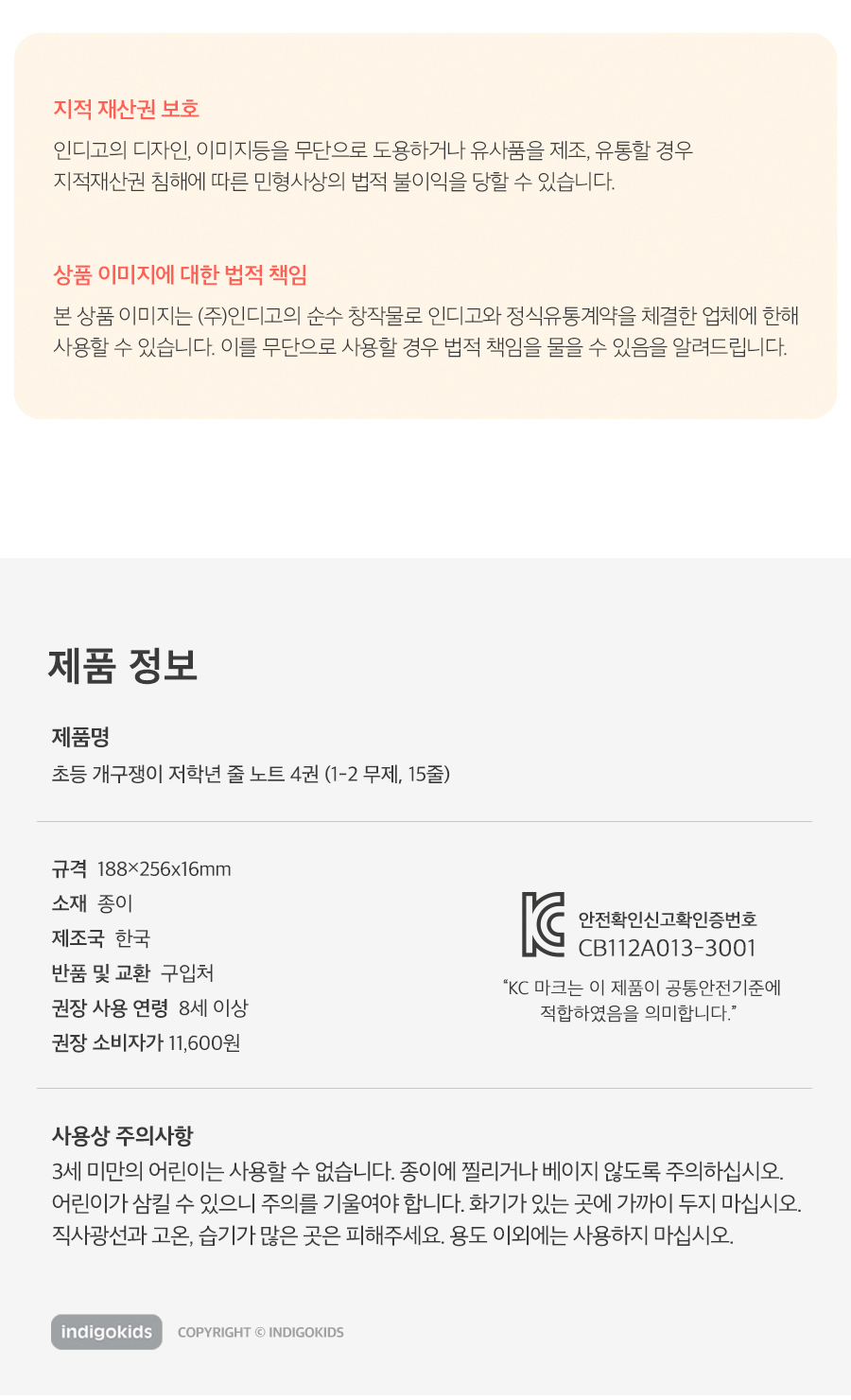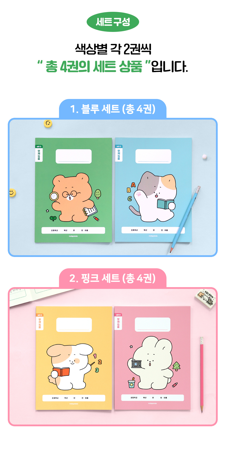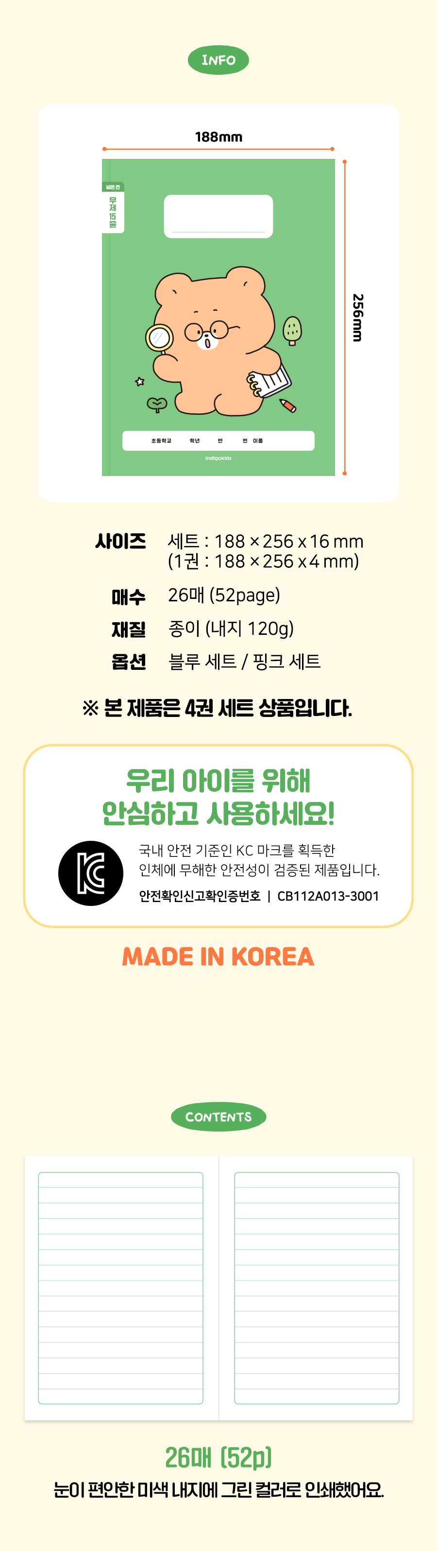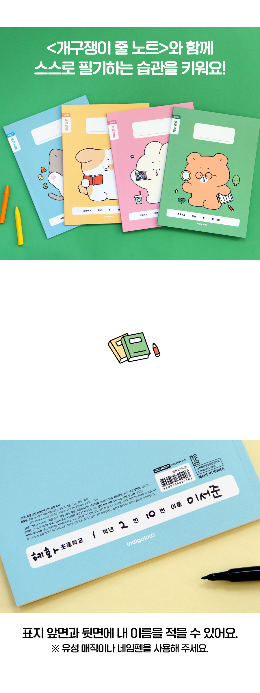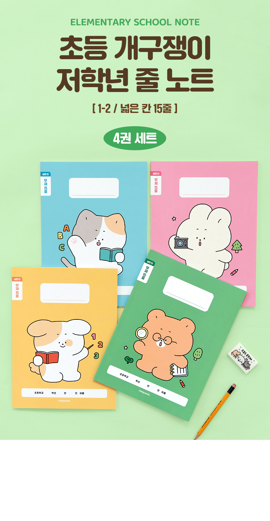 초등 개구쟁이 저학년 줄 노트 4권 (1-2무제 120g 내지)OPTION