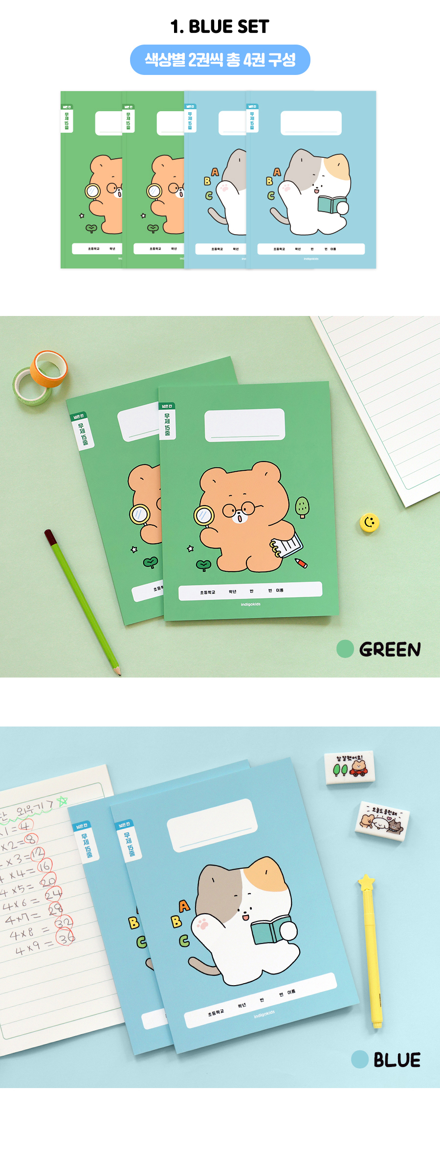 초등 개구쟁이 저학년 줄 노트 4권 (1-2무제 120g 내지)