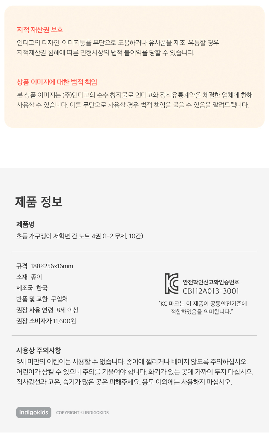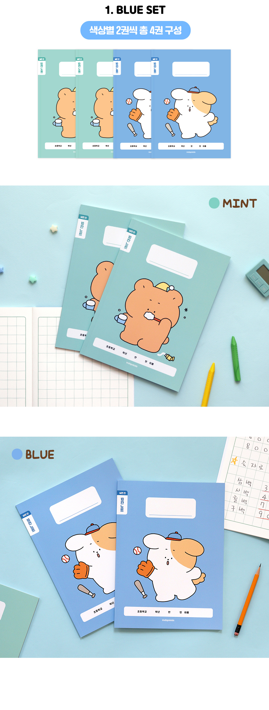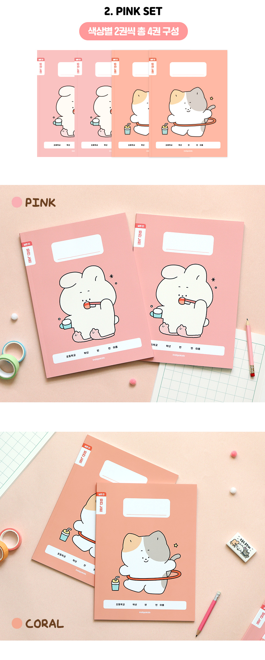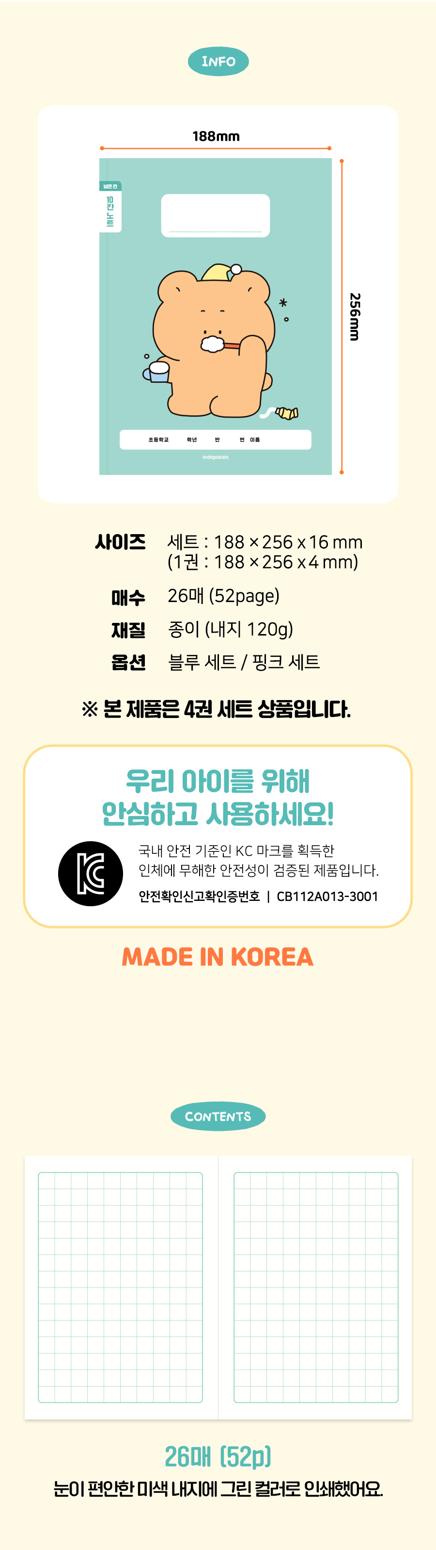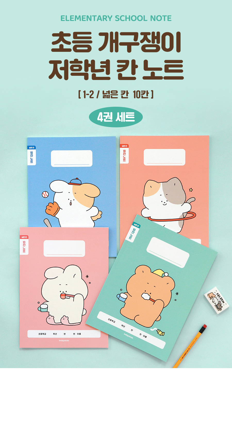 초등 개구쟁이 저학년 칸 노트 4권 (1-2무제 120g 내지)OPTION