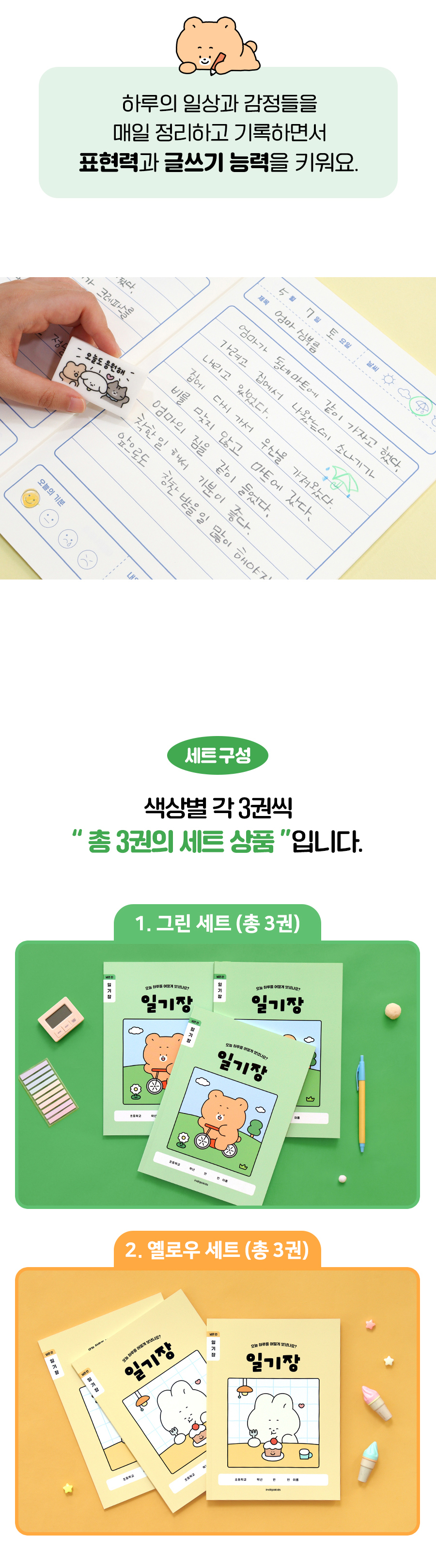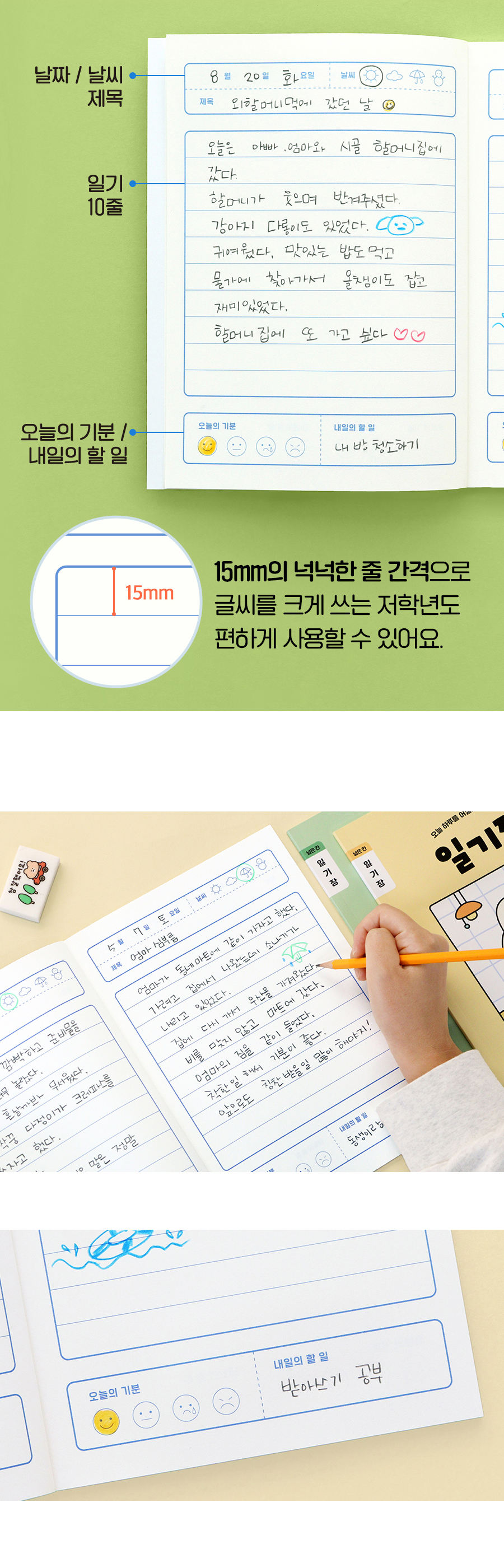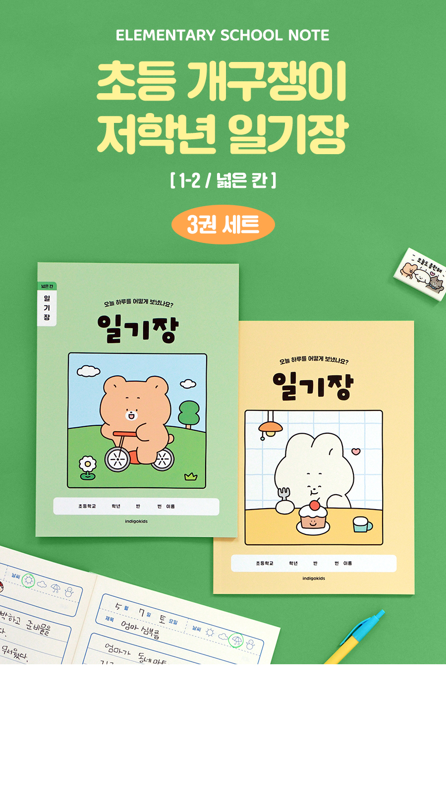 초등 개구쟁이 저학년 일기장 3권 (1-2 넓은 칸 120g 내지)OPTION