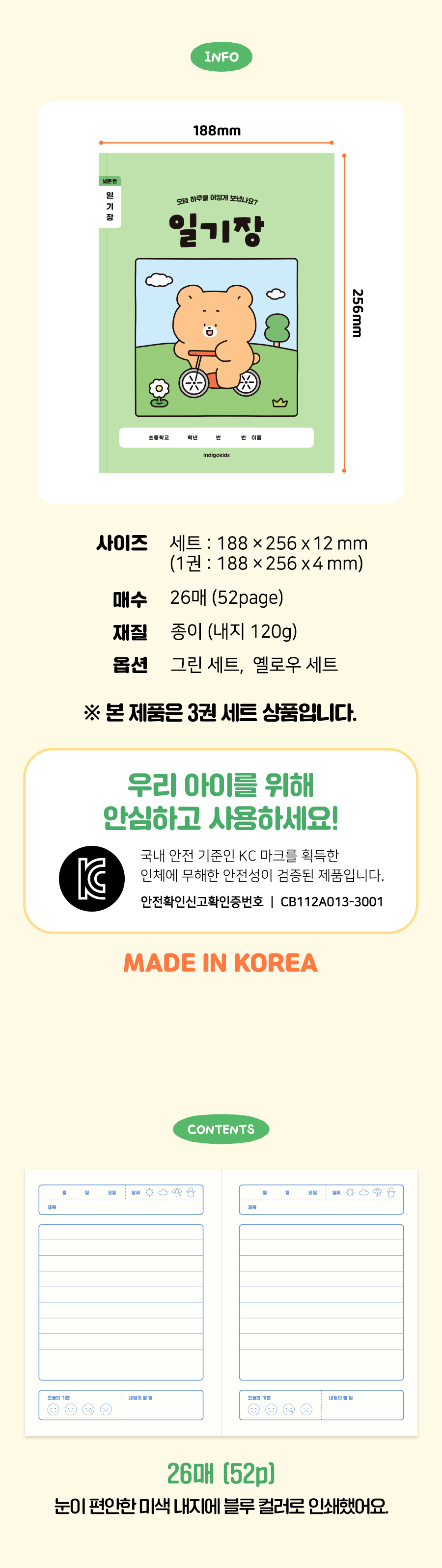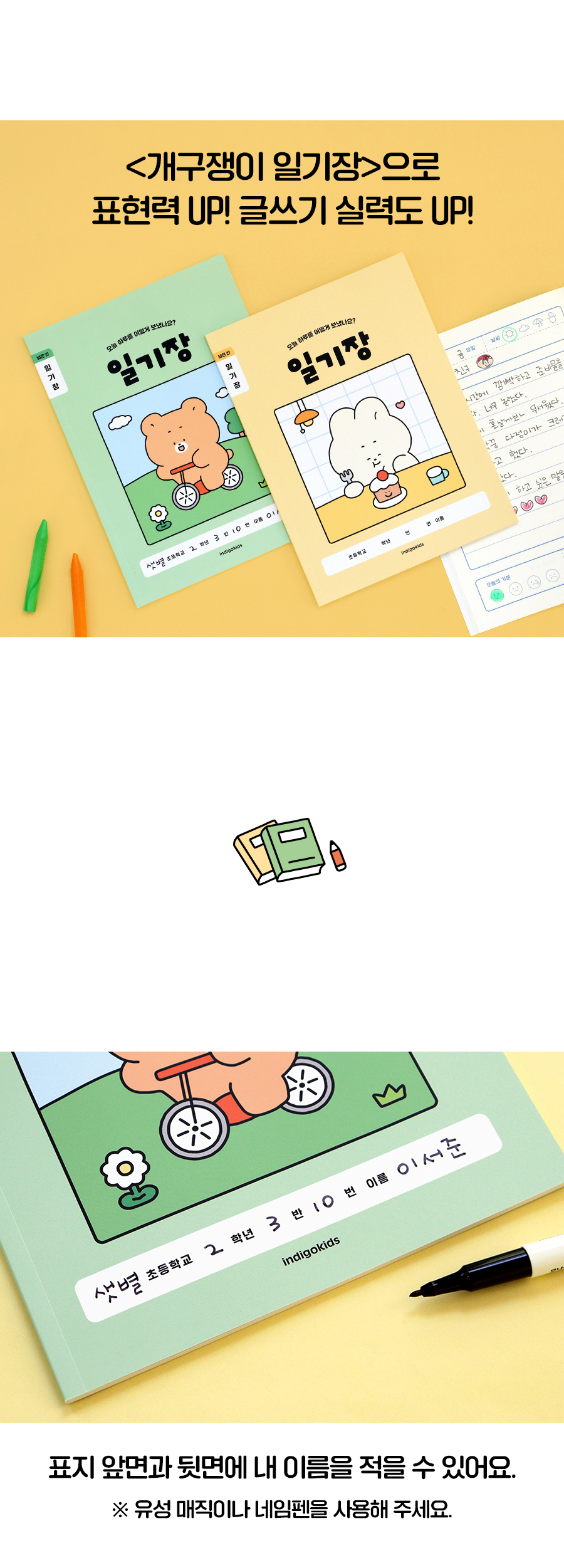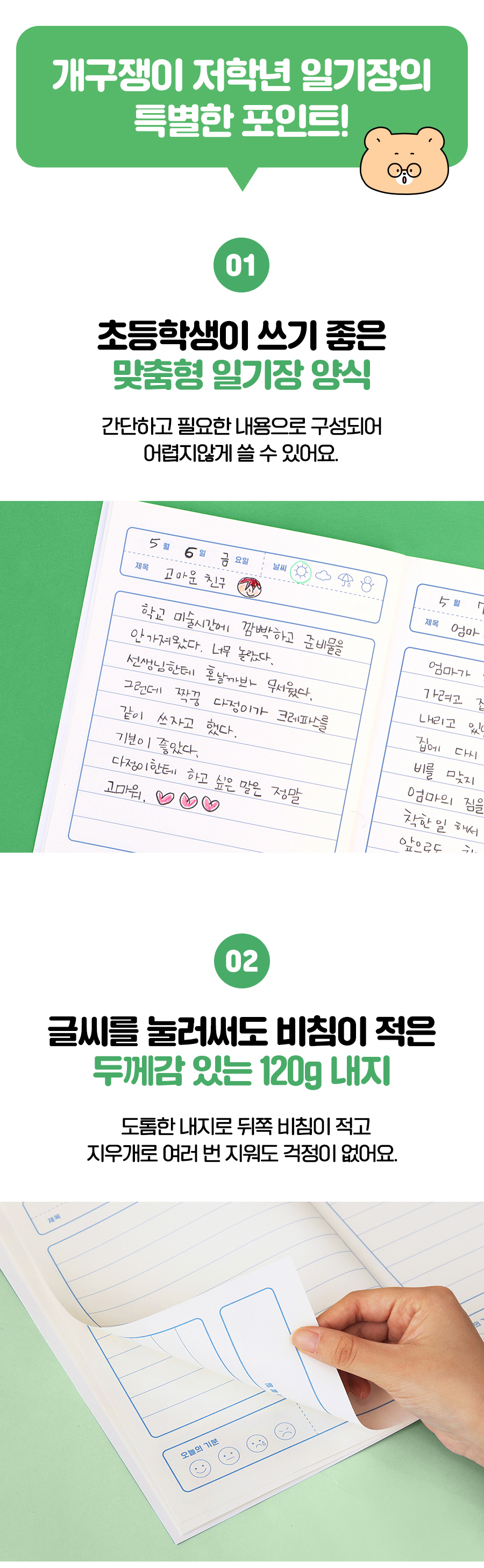 초등 개구쟁이 저학년 일기장 3권 (1-2 넓은 칸 120g 내지)OPTION