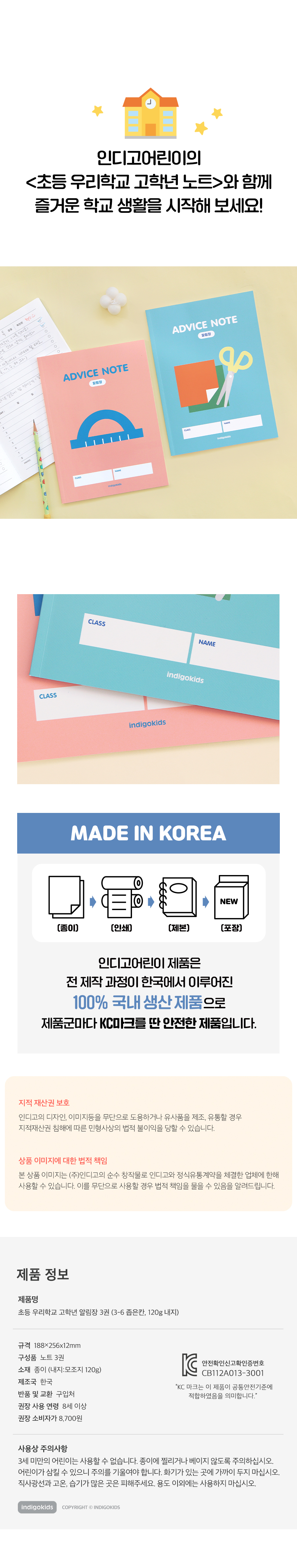 초등 우리학교 고학년 알림장 3권 (3-6 좁은칸 120g 내지)OPTION