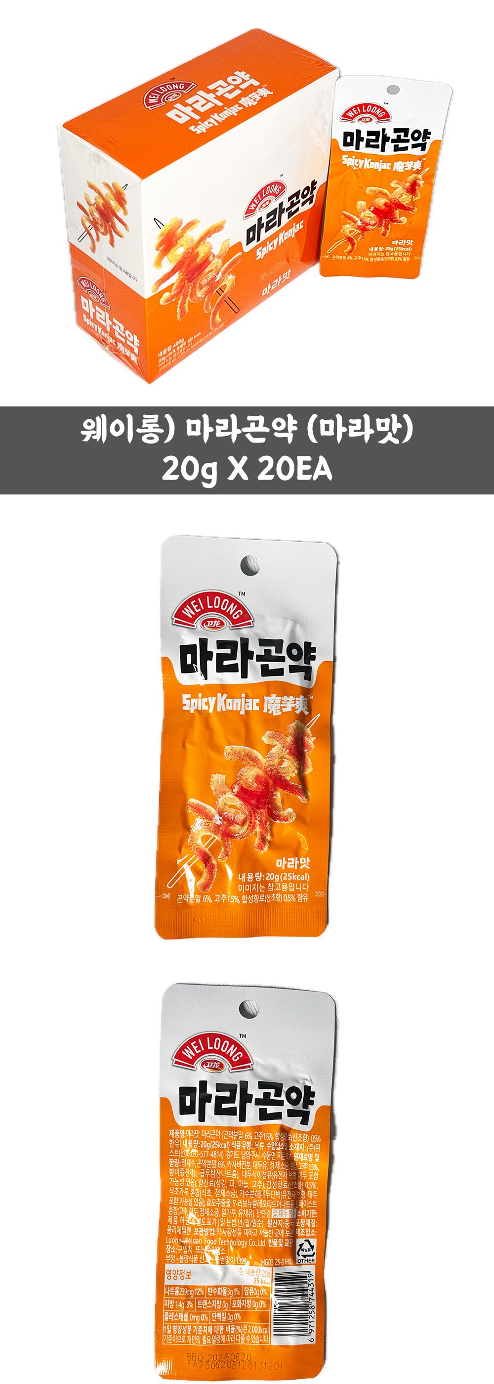 웨이롱 마라곤약 마라맛 20g (20개 1세트)