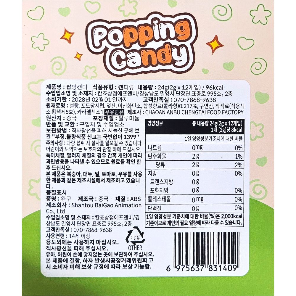 화분블럭 팝핑캔디 2g (12개 1세트)