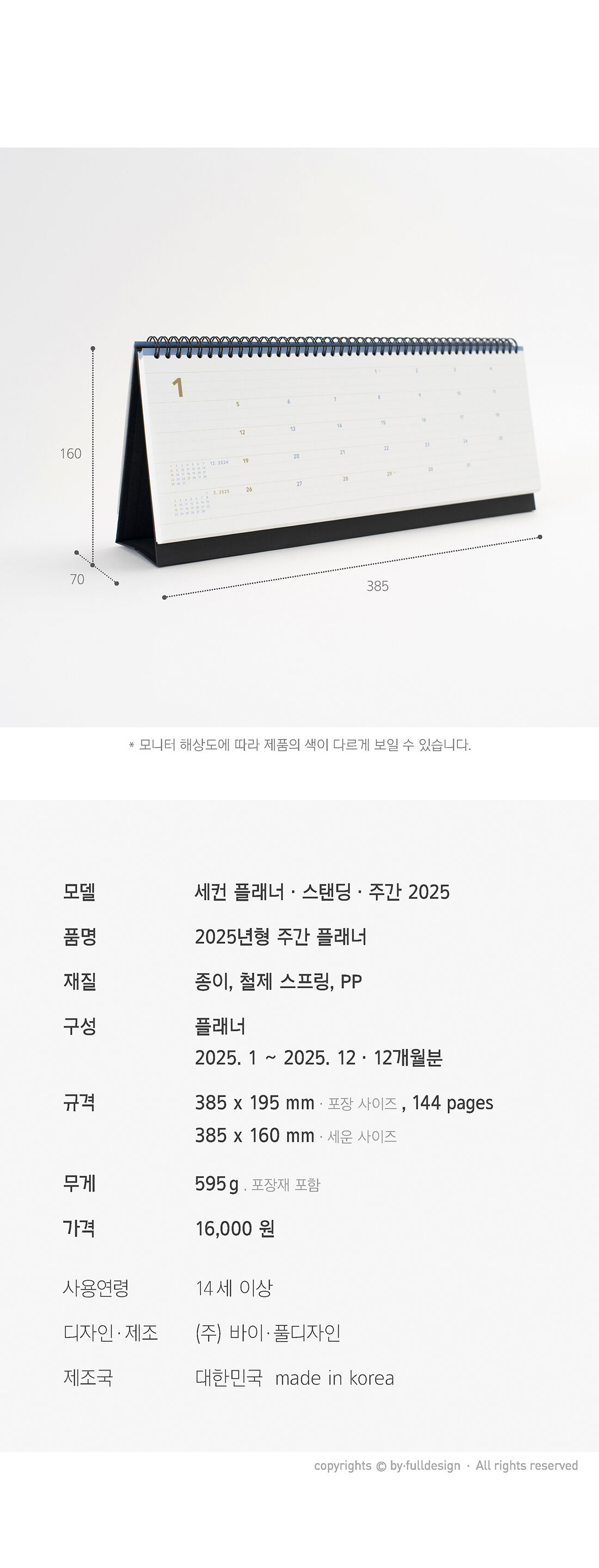 | 품명 및 모델명 | 세컨 플래너 스탠딩 주간 2025년 | ||