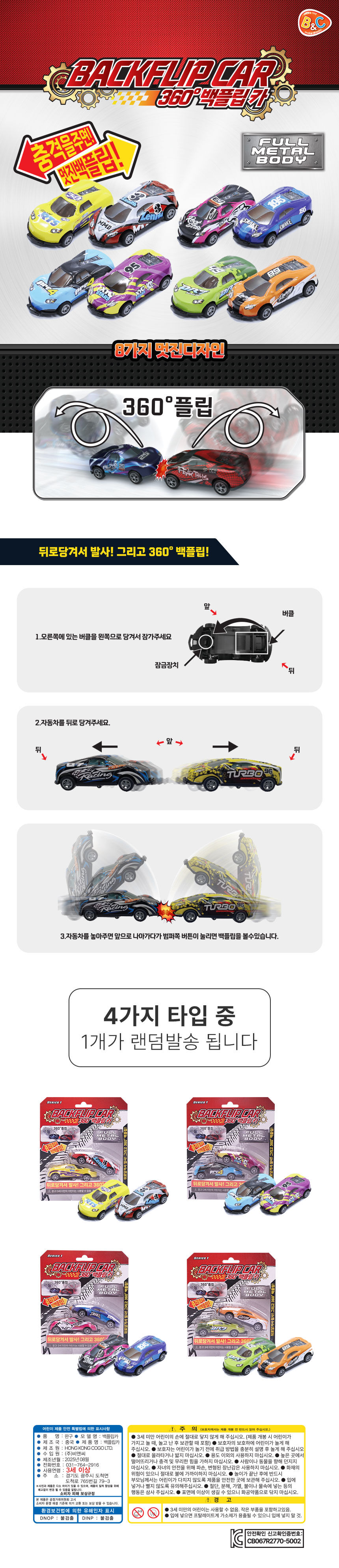 | 품명 및 모델명 | 360도 메탈바디 백플립카 (랜덤발송) | ||