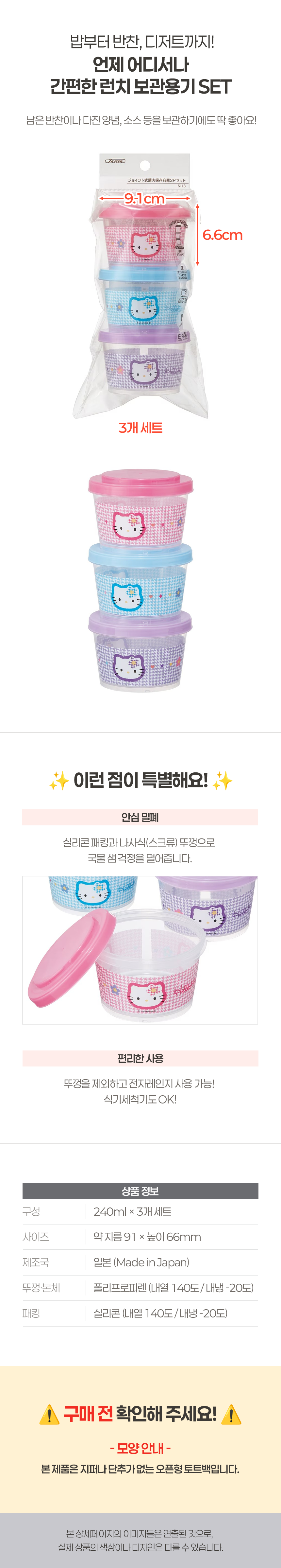 | 품명 및 모델명 | 헬로키티 카오하나 조인트식 보존용기 3P | ||