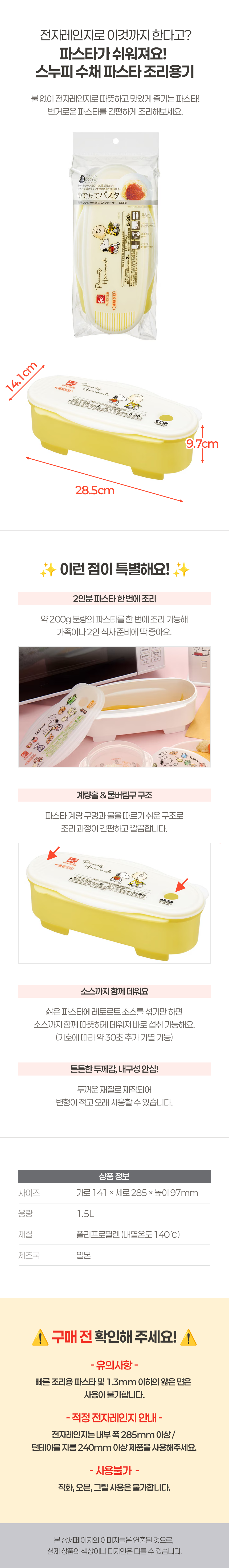 | 품명 및 모델명 | 스누피 수채 파스타 조리용기 | ||