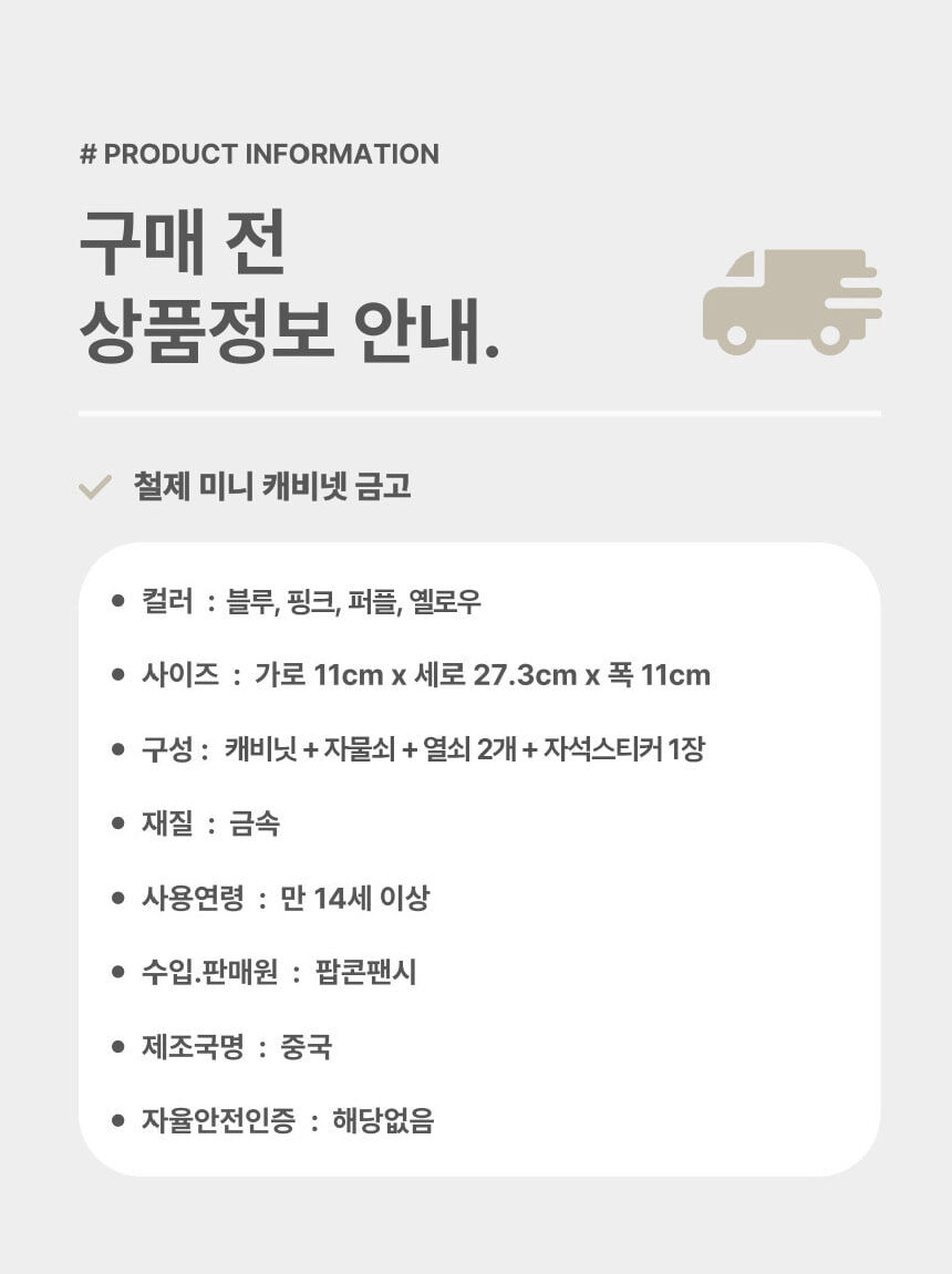 | 제품구성품 | 캐비넷+자물쇠+열쇠2개+자석스티커1장 | ||