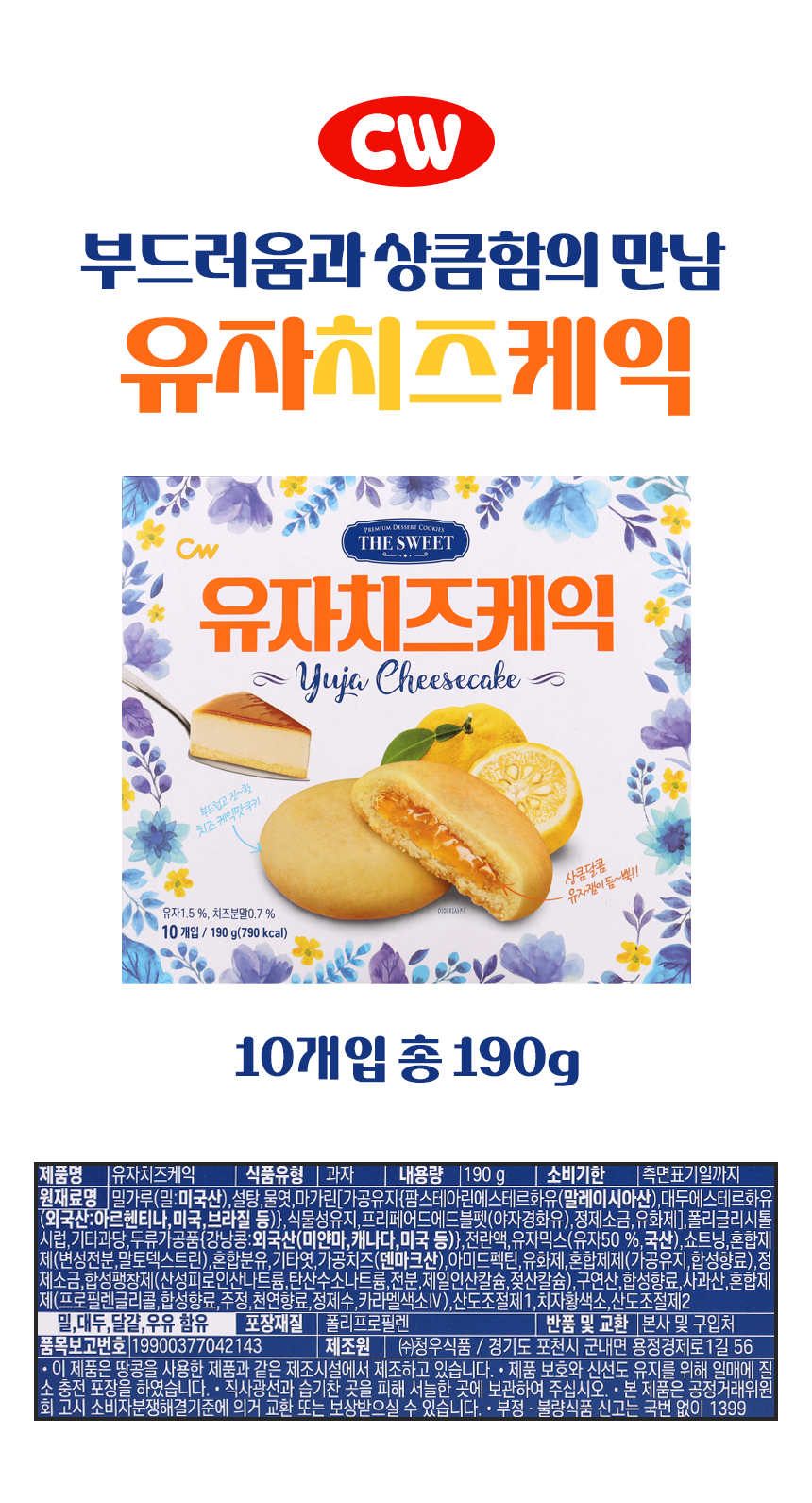 | 품명 및 모델명 | 유자 치즈케익 190g | ||