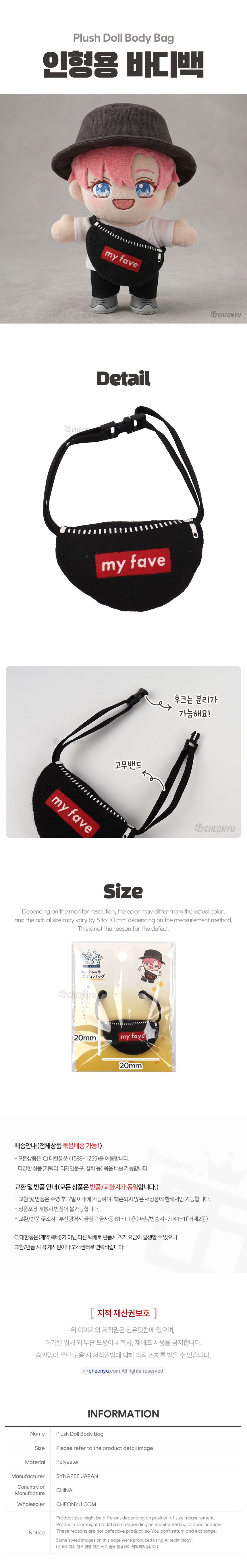 | 품명 및 모델명 | 인형용 바디백 | ||
