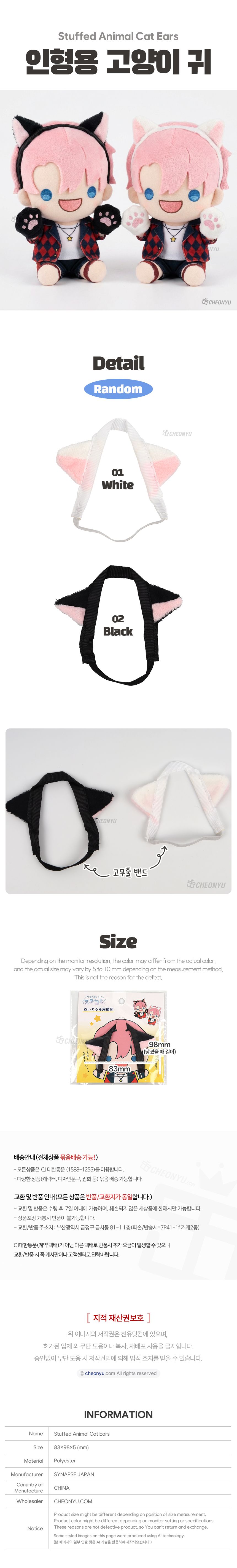 | 품명 및 모델명 | 인형용 고양이 귀 액세서리 (랜덤) | ||