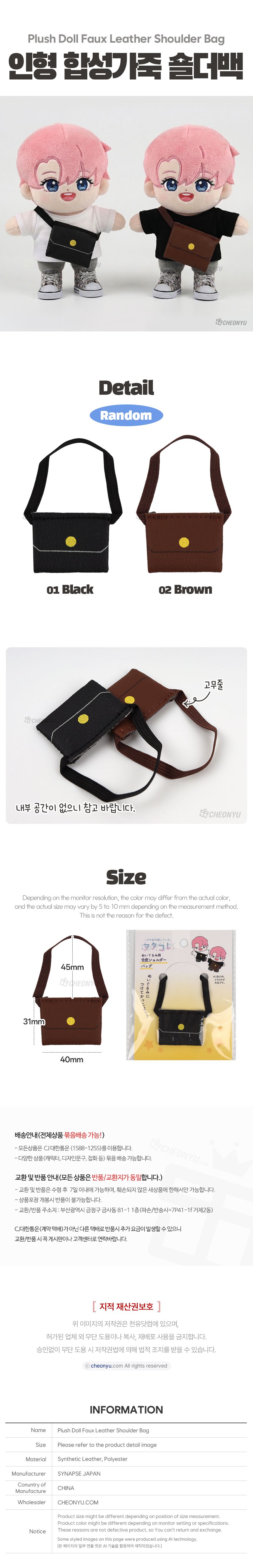 | 품명 및 모델명 | 인형용 합성가죽 숄더백 (랜덤) | ||