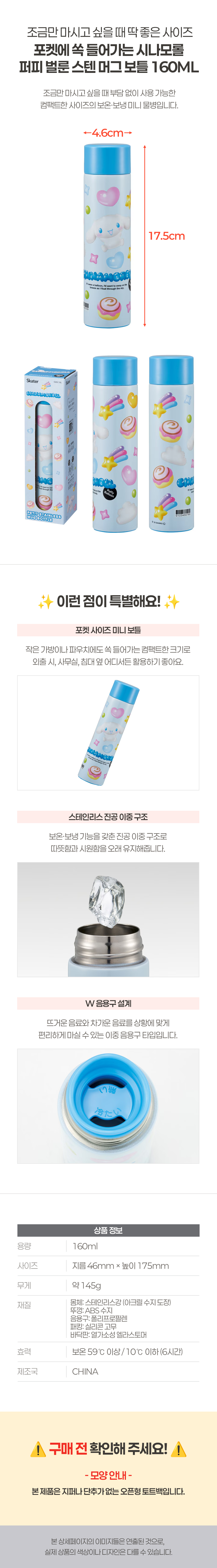 | 품명 및 모델명 | 시나모롤 퍼피 벌룬 스텐 머그 보틀 160ml | ||