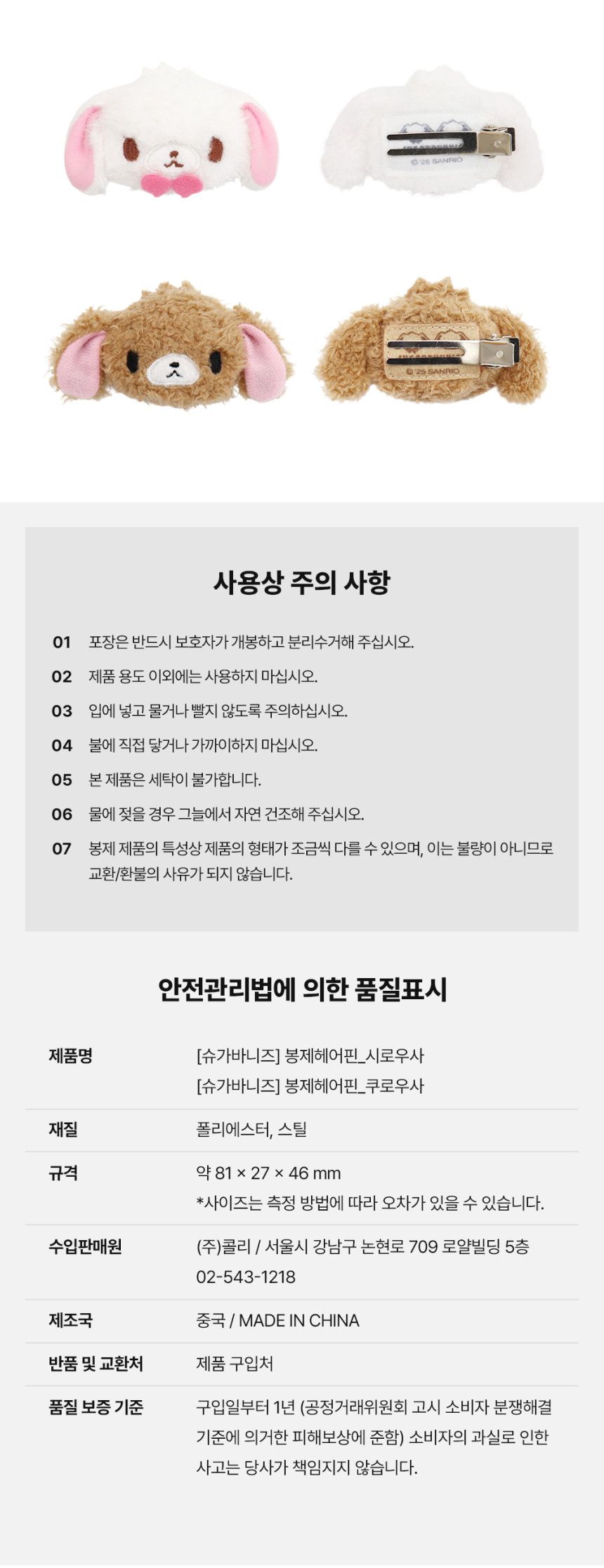 | 품명 및 모델명 | 슈가바니즈 봉제 헤어핀 | ||