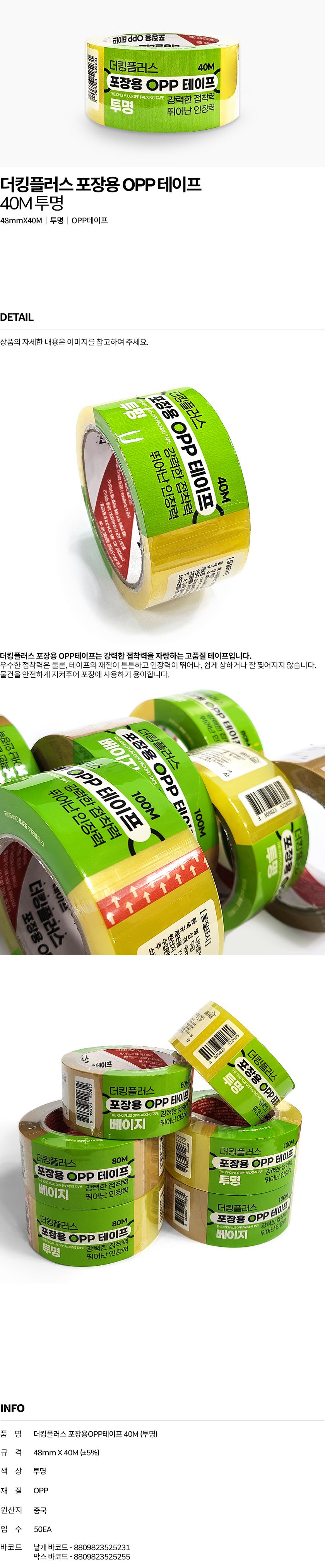 | 품명 및 모델명 | 더킹플러스 포장용 OPP 테이프 40M (투명) | ||