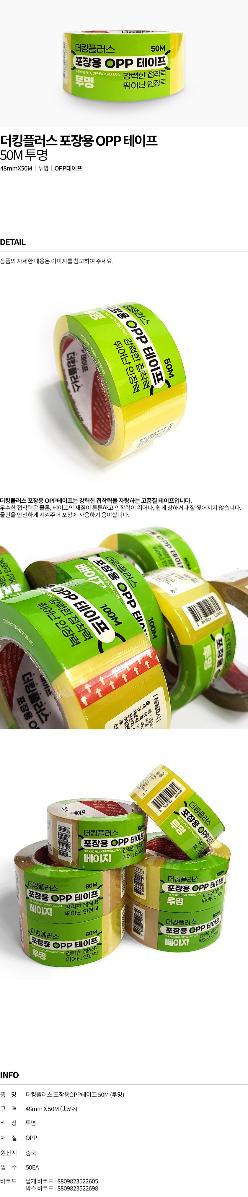 | 품명 및 모델명 | 더킹플러스 포장용 OPP 테이프 50M (투명) | ||