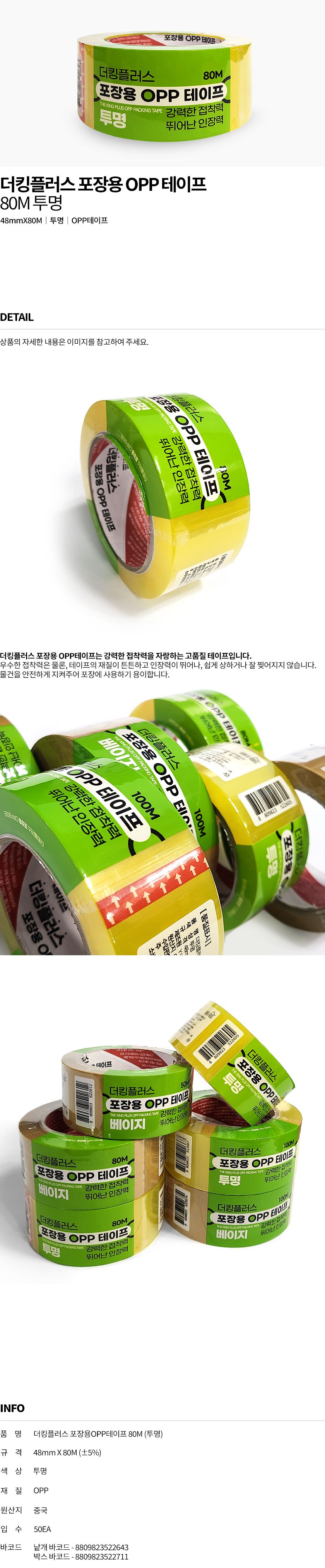 | 품명 및 모델명 | 더킹플러스 포장용 OPP 테이프 80M (투명) | ||