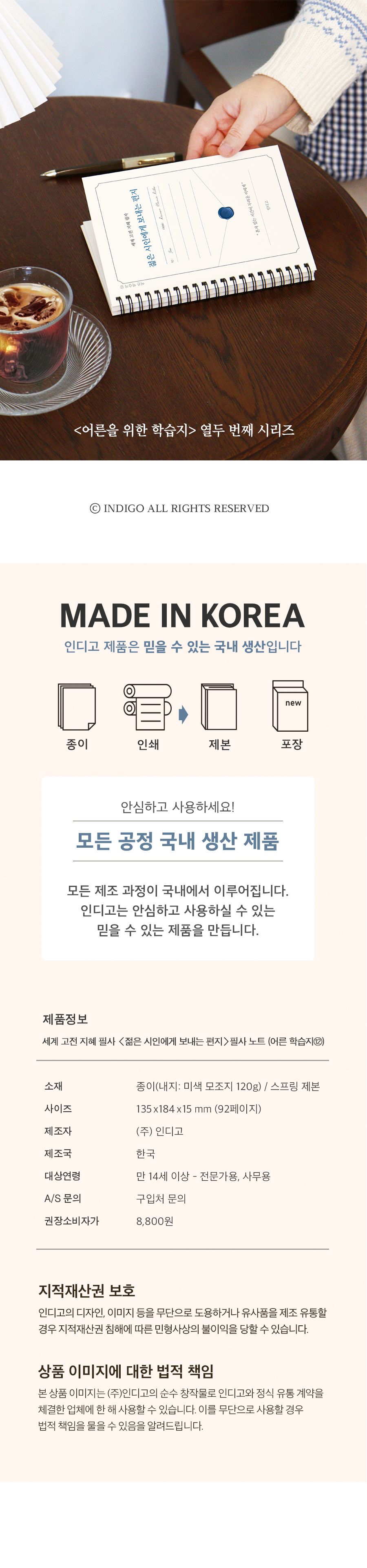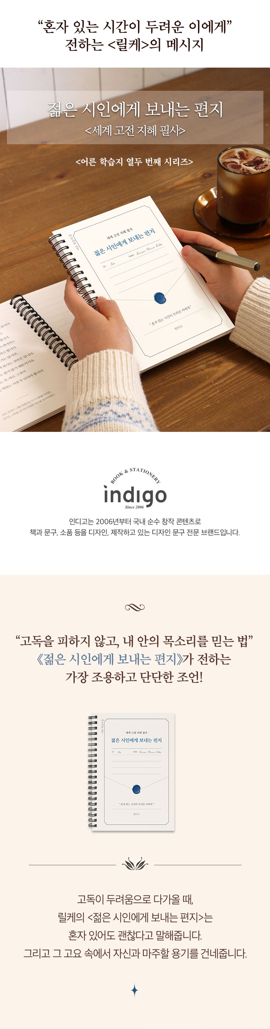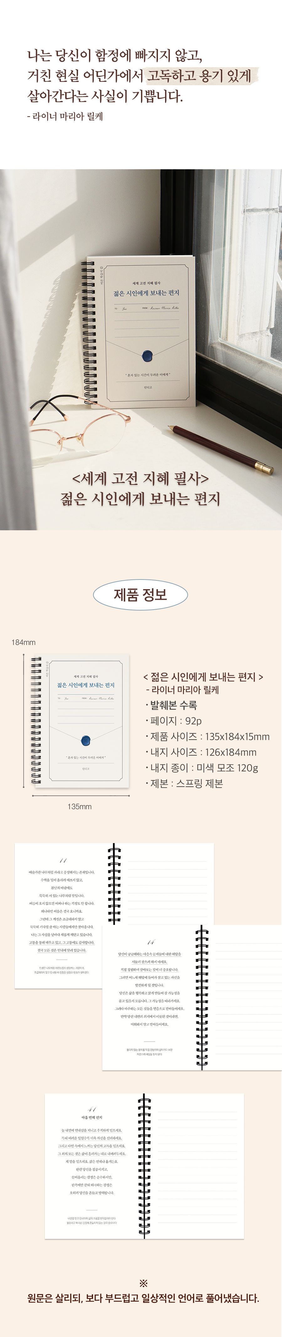 | 품명 및 모델명 | 세계 고전 지혜 필사 <젊은 시인에게 보내는 편지> 필사 노트 (어른 학습지⑫) | ||