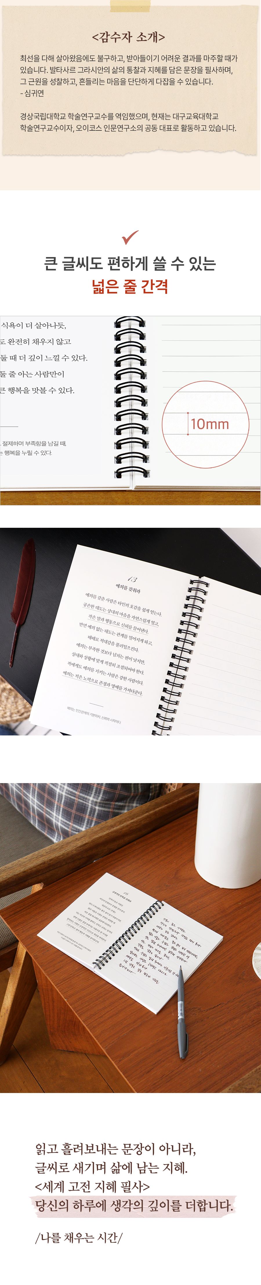 | 품명 및 모델명 | 세계 고전 지혜 필사 <지혜의 기술> 필사 노트 (어른 학습지⑫) | ||