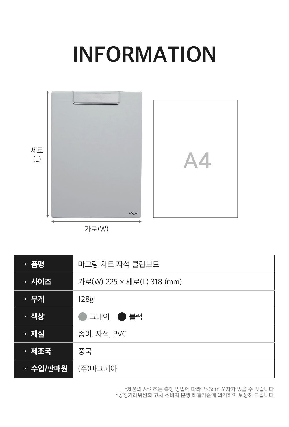 | 품명 및 모델명 | 마그랑 자석 차트 클립 보드(A4) | ||