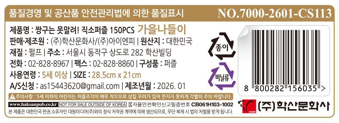| 제품구성품 | 상자 + 퍼즐 | ||