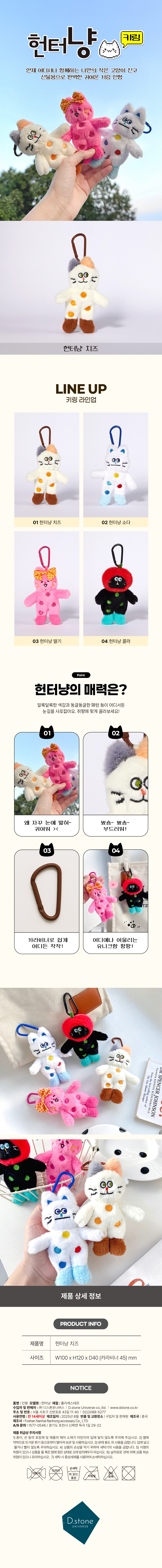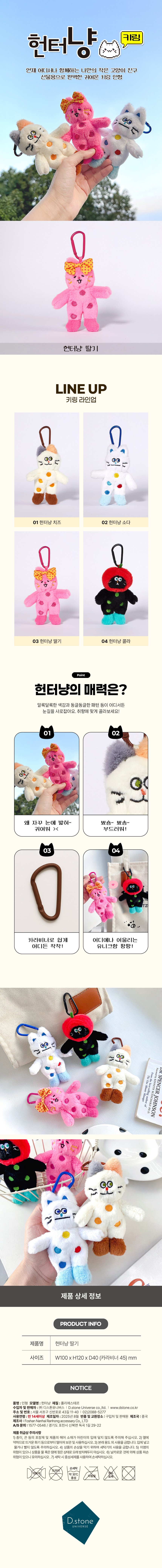 | 품명 및 모델명 | 헌터냥의 인형 키링 소다 콜라 치즈 딸기 시리즈 | ||