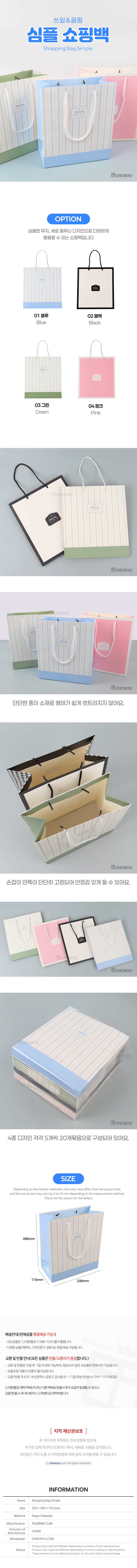 | 품명 및 모델명 | 심플 종이쇼핑백 (20개 1세트) | ||