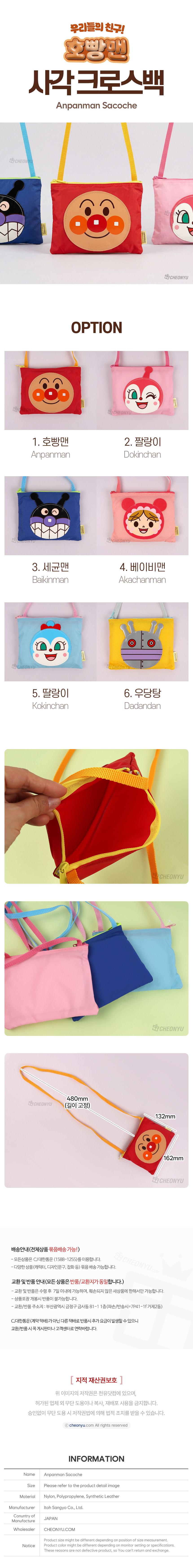 | 품명 및 모델명 | 호빵맨 사각 크로스백 | ||