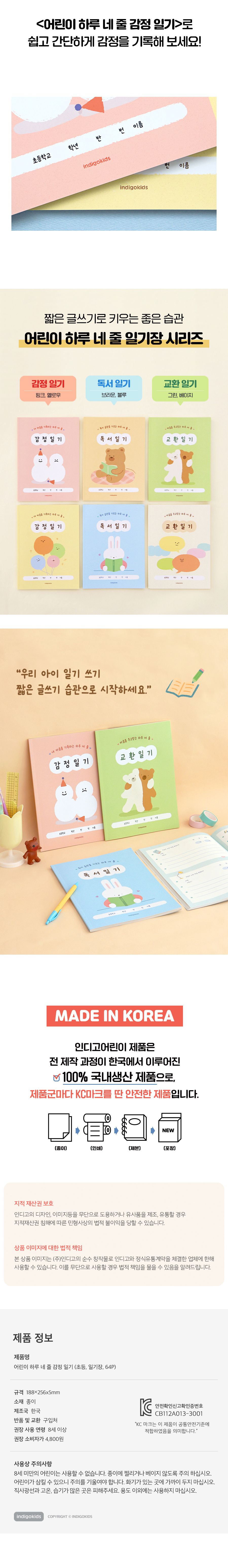 | 품명 및 모델명 | 어린이 하루 네 줄 감정 일기 (초등 일기장 64p) | ||