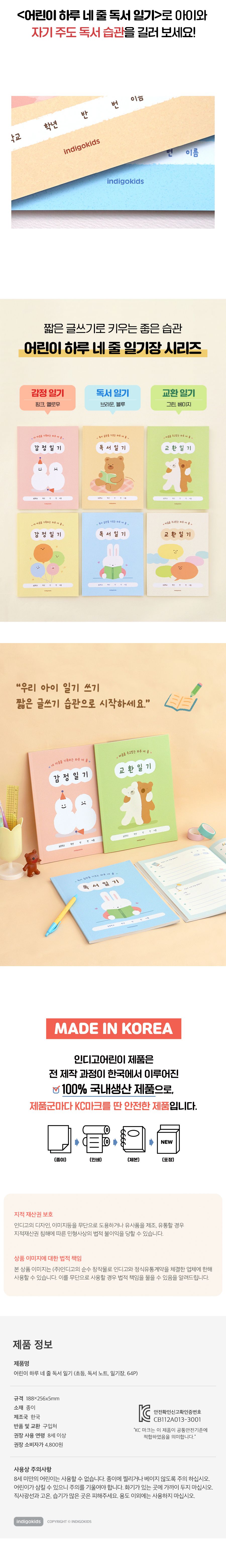 | 품명 및 모델명 | 어린이 하루 네 줄 독서 일기 (초등 일기장 64p) | ||