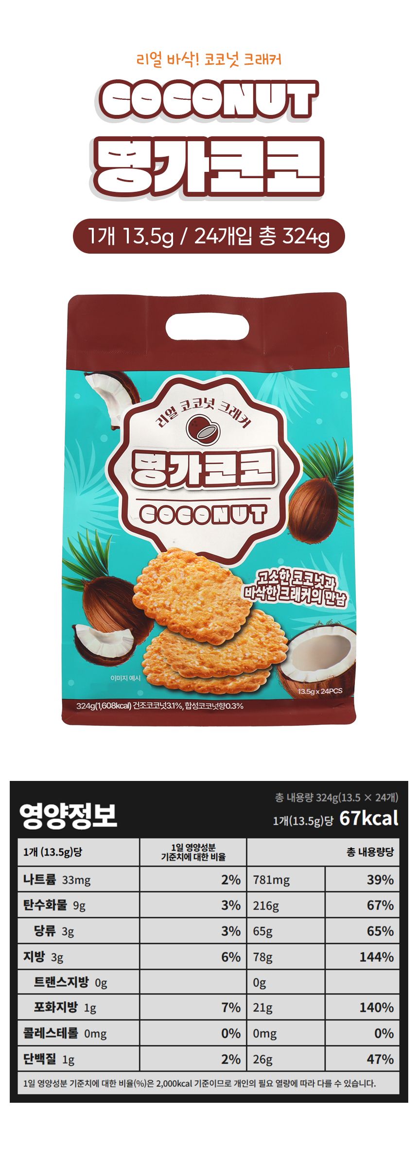 | 품명 및 모델명 | 명가코코 코코넛 크래커 324g | ||