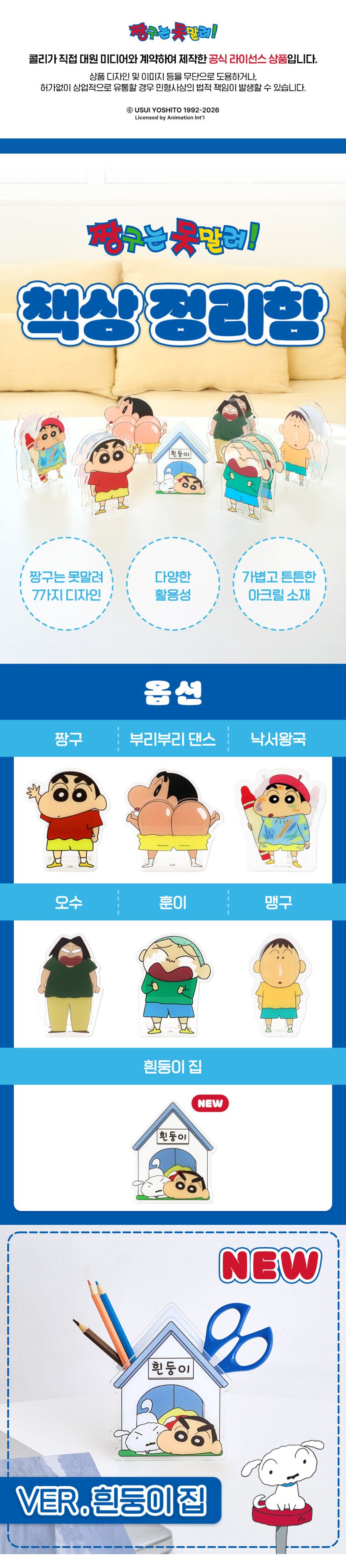 | 품명 및 모델명 | 짱구는못말려 책상정리함 07 흰둥이집 | ||