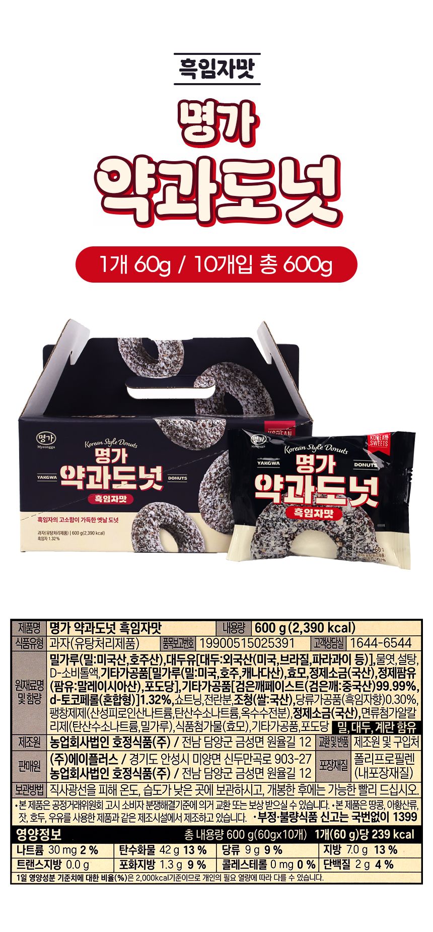 | 품명 및 모델명 | 명가 약과도넛 10개입_흑임자맛 | ||