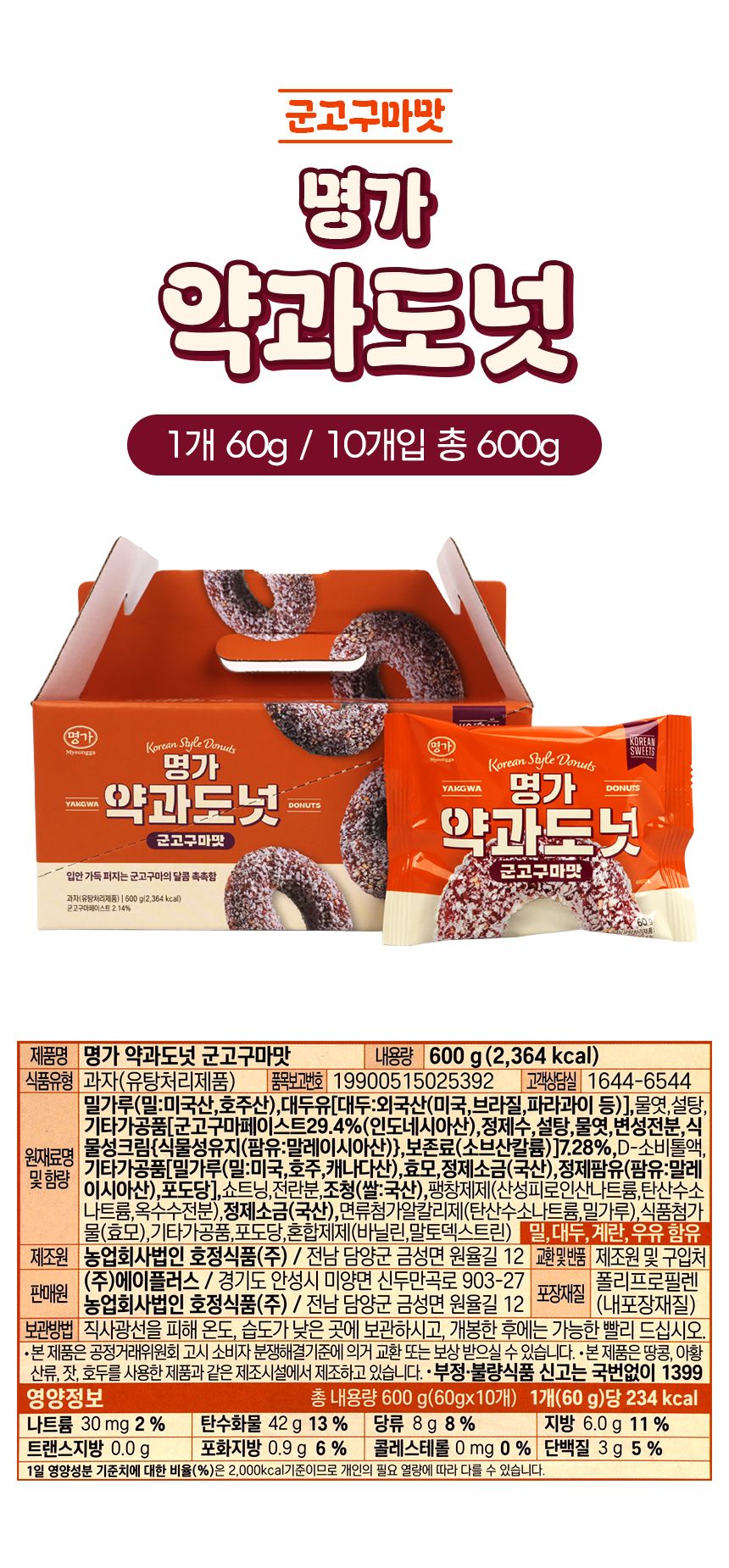 | 품명 및 모델명 | 명가 약과도넛 10개입_군고구마맛 | ||