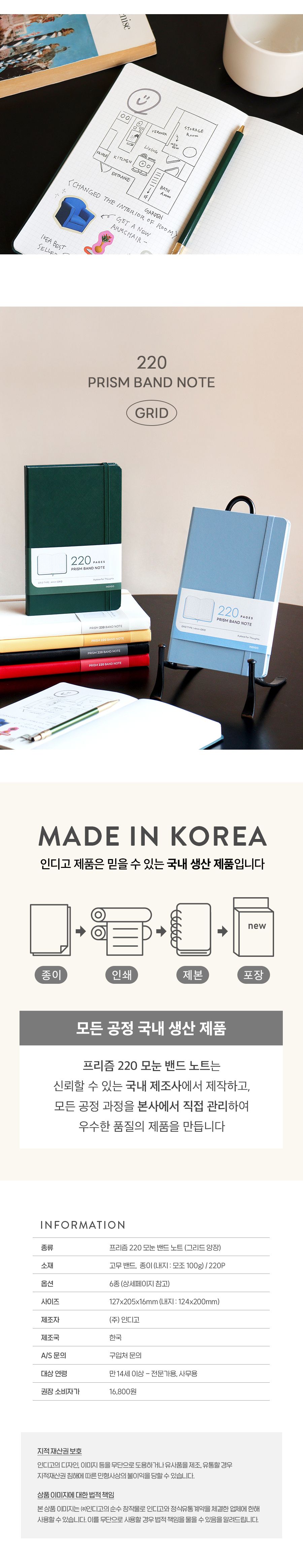 | 품명 및 모델명 | 프리즘 220 모눈 밴드 노트 (A5 그리드 양장) | ||