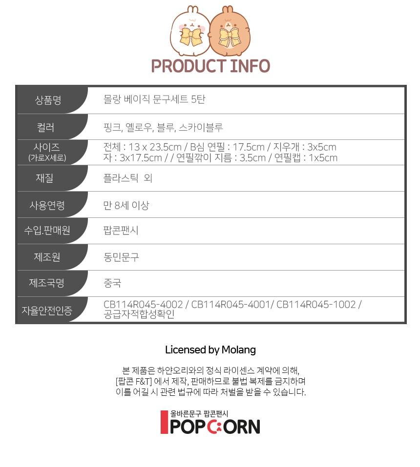 | 품명 및 모델명 | 몰랑 베이직 문구세트 5탄 (랜덤) | ||